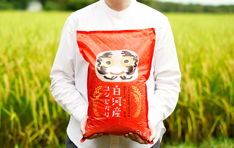 阿武隈川からの豊かな水に加え、昼間は暑く夜間は涼しい気候は、米づくりに理想的な風土。白河産コシヒカリは、白河ならではの恵みを受けたお米です。